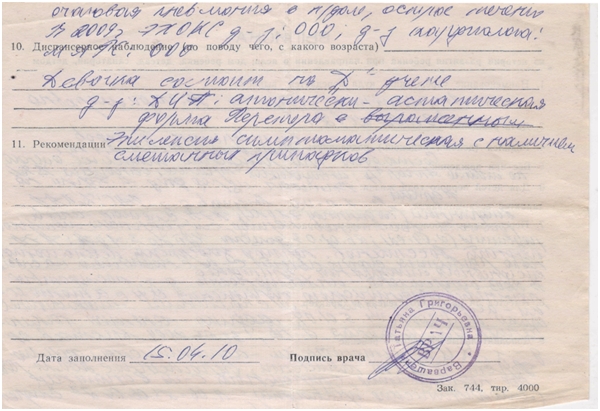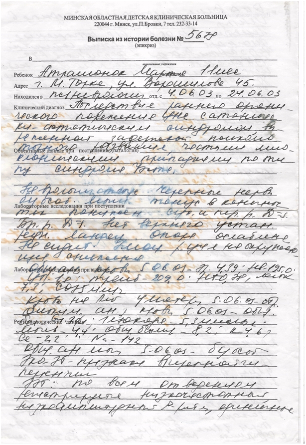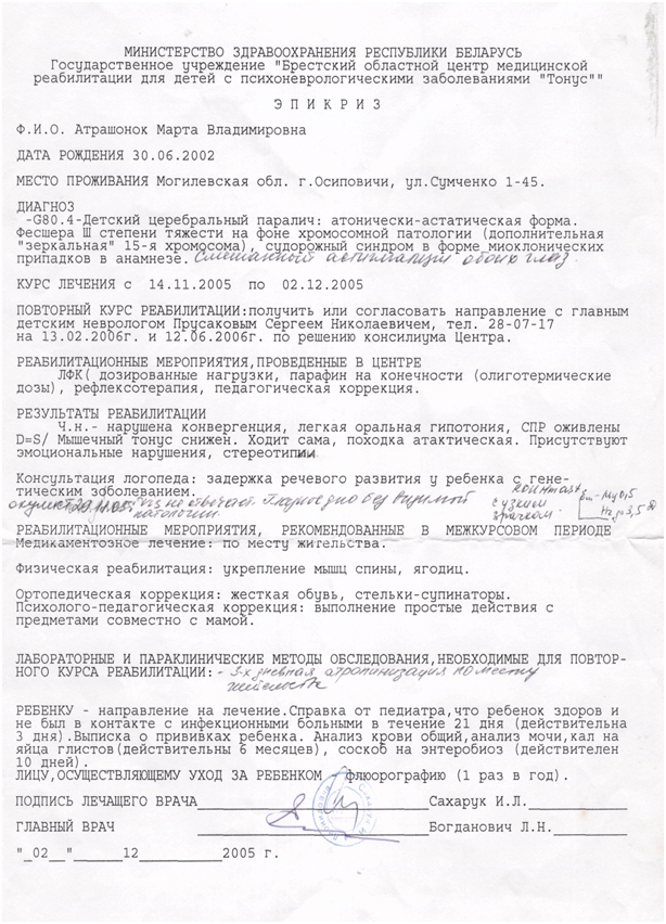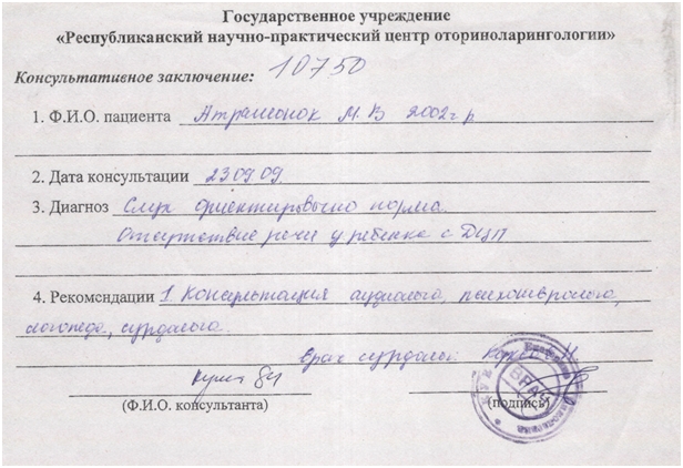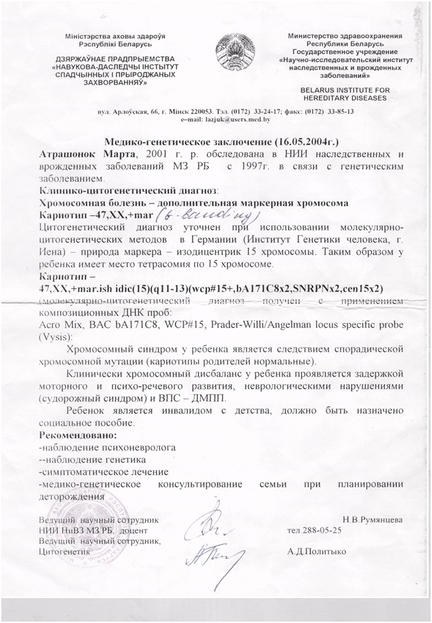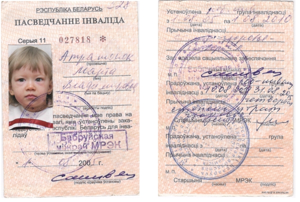 Подтверждающие документы о заболевании ребенка